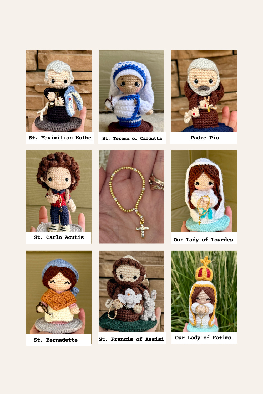 A mini rosary makes a great accessory for your saint doll! (You can find all the patterns for the above saints in my pattern library.)